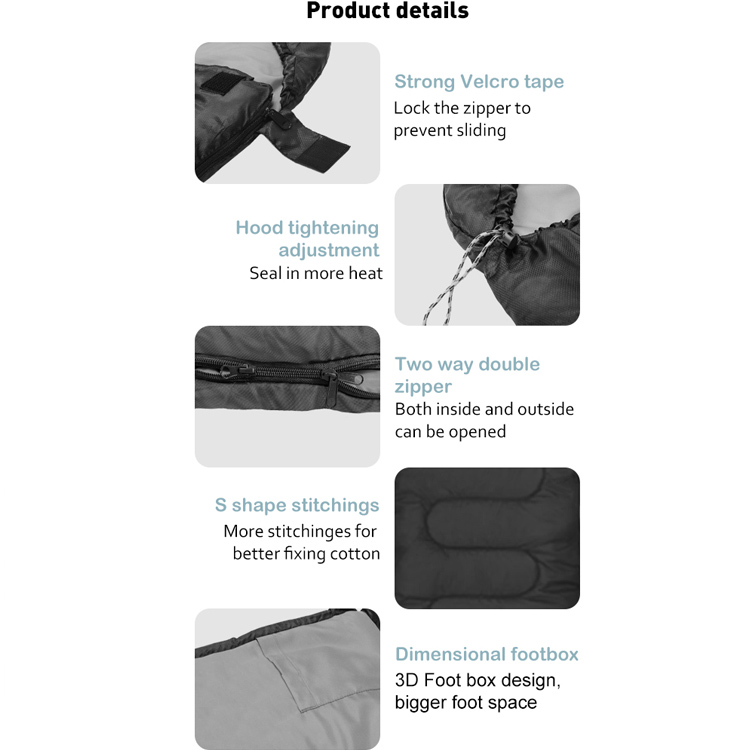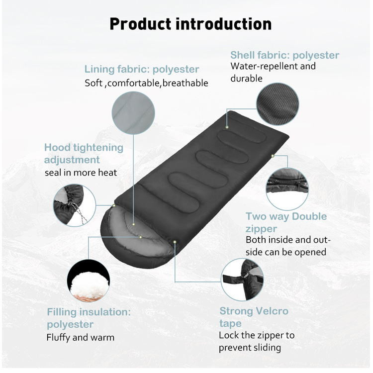 Kot profesionalni proizvajalec bi vam radi dobavili nepremočljivo spalno vrečo BEST-HOME.4 Season Outdoor v obliki ovojnice. Izdelek se že dolgo izvaža v Evropo, Severno Ameriko in na območja Srednjega vzhoda. Kot tovarna lahko zagotovimo točen čas dostave in najboljše poprodajne storitve, kakovost naših izdelkov pa priznavajo stranke po vsem svetu.