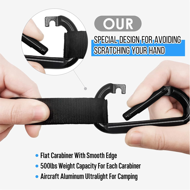 Vključuje dva 10-čevljeva nastavljiva trakova za drevesa s 15+ točkami zanke in vojaške aluminijaste vponke, ki omogočajo varno namestitev na drevesa, oddaljena od 12 do 25 čevljev, brez poškodovanja lubja.