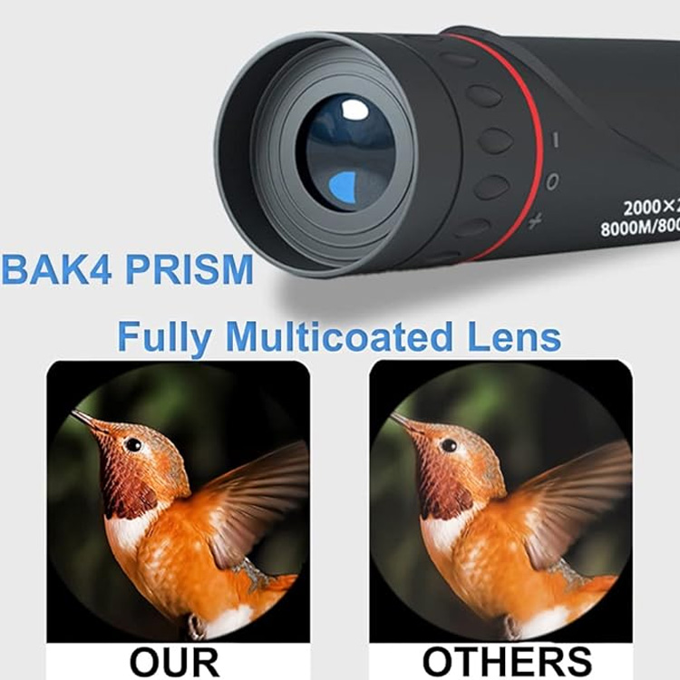 Vsebuje optiko z večplastno prevleko in prizmo BAK-4, ki zagotavljata izjemno jasnost slike, natančnost barv in prepustnost svetlobe, s čimer se oddaljene pokrajine in divje živali izostrijo v ostrem in svetlem ostrenju.