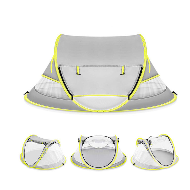 Lahek enoslojni vodoodporen poliestrski pop-up šotor. Vaše vrhunsko poletno zatočišče na plaži za družinske dogodivščine. Ta lahek izvlečni šotor ima enoslojno vodoodporno poliestrsko konstrukcijo, ki udobno sprejme štiri osebe. Kot nalašč za izlete na plažo in sezonsko kampiranje, združuje hitro nastavitev z zanesljivo zaščito pred vremenskimi vplivi.