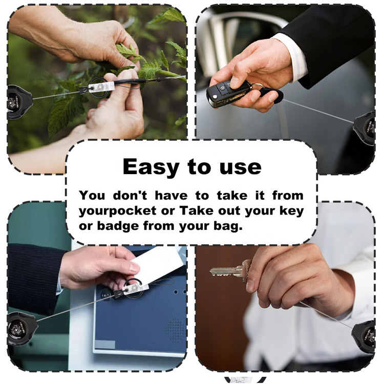 Vsebuje trpežno 80-centimetrsko najlonsko vrv z gladkim izvlečnim mehanizmom, ki omogoča udobno raztezanje in hkrati preprečuje zapletanje ter ohranja vaše ključe varne in dostopne med aktivnostmi na prostem.