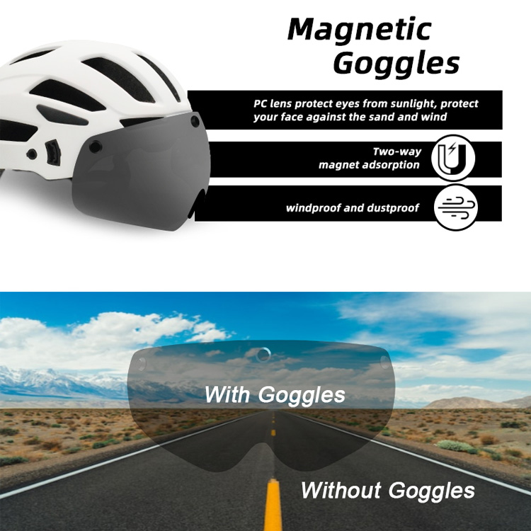 Zračna varnostna čelada za cestno kolesarjenje z zadnjo lučjo za polnjenje. Vaša najboljša prilagodljiva varnostna rešitev za sodobno kolesarjenje. Ta dvojna športna čelada za odrasle ima vgrajeno LED zadnjo luč za ponovno polnjenje in napredno zračno zasnovo. Skupaj z zaščitnim vizirjem zagotavlja izboljšano vidljivost in udobje za pustolovščine s cestnim kolesom.