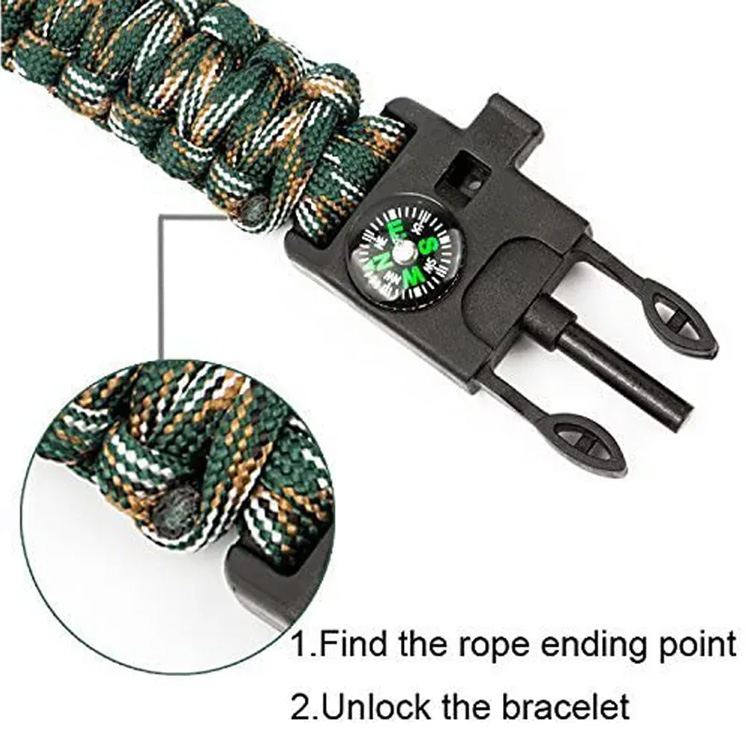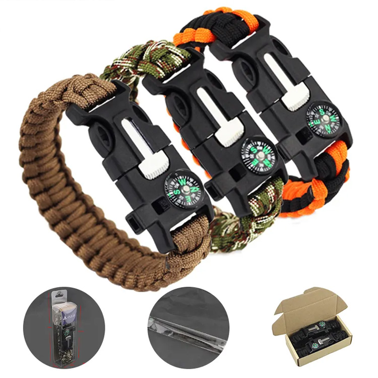 Veleprodajni vzorec taktične zapestnice s paracordom Survival 550 LBS. Vaša osnovna oprema za preživetje za pustolovščine na prostem. Ta taktična paracord zapestnica ima izjemno moč 550 LBS. Kot nalašč za kampiranje in nujne primere, ponuja tako praktično uporabnost kot eleganten dizajn. Na voljo za veleprodajo z brezplačnimi vzorci.